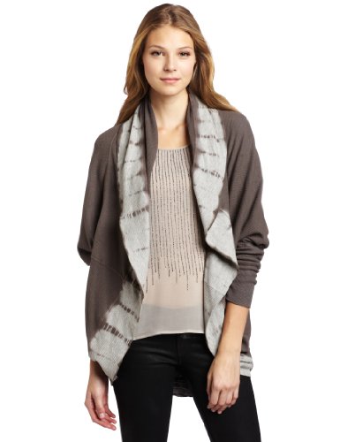 long sleeve knit cardigan with tye dye trim, shrug style dolman sleeves