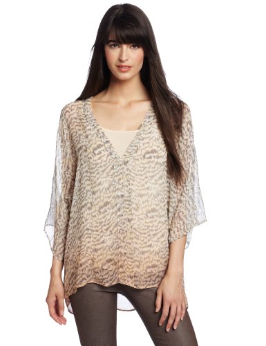 Gypsy 05 Women's Tigra Print 3/4 Sleeve V-Neck Top, Tangerine, Medium