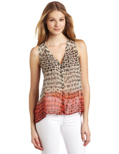 Gypsy 05 Women's Tigra Print 3/4 Sleeve V-Neck Top, Tangerine, Medium Rate This Product : Animal print kimono top with ta...